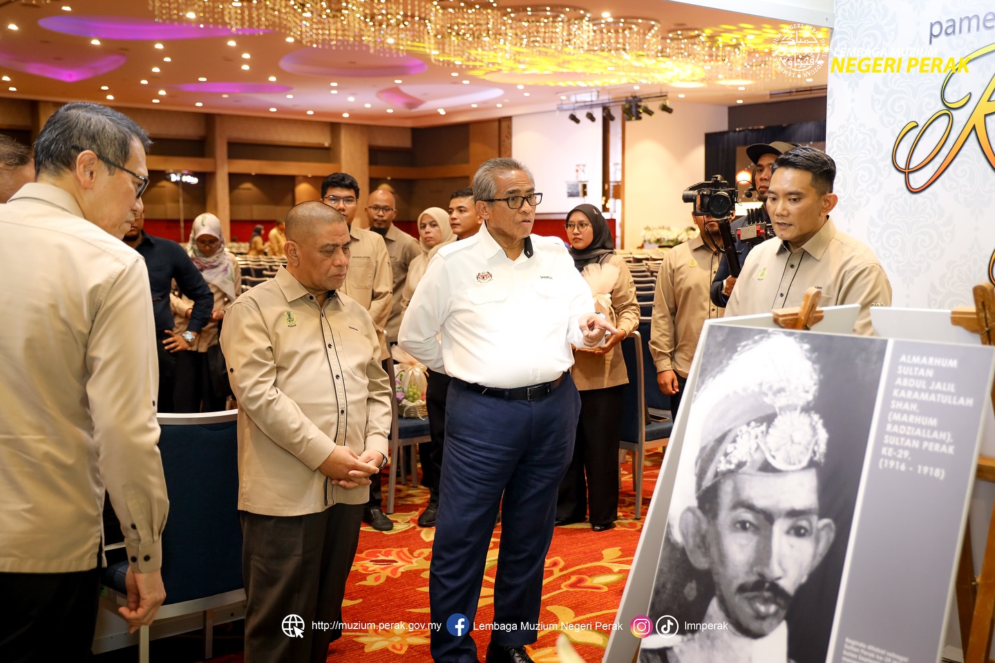 Pameran Lembaga Muzium Negeri Perak mempersembahkan sejarah Kesultanan Perak, bermula Sultan Perak ke-26 hingga Sultan Perak ke-35, melalui paparan panel maklumat.