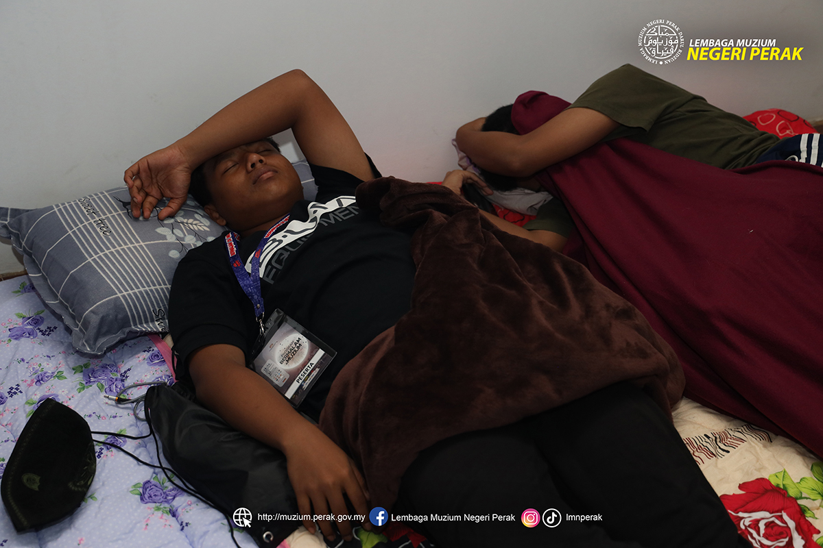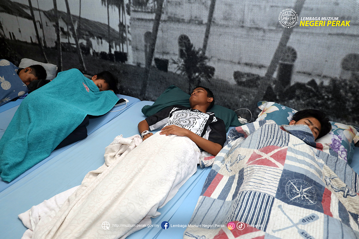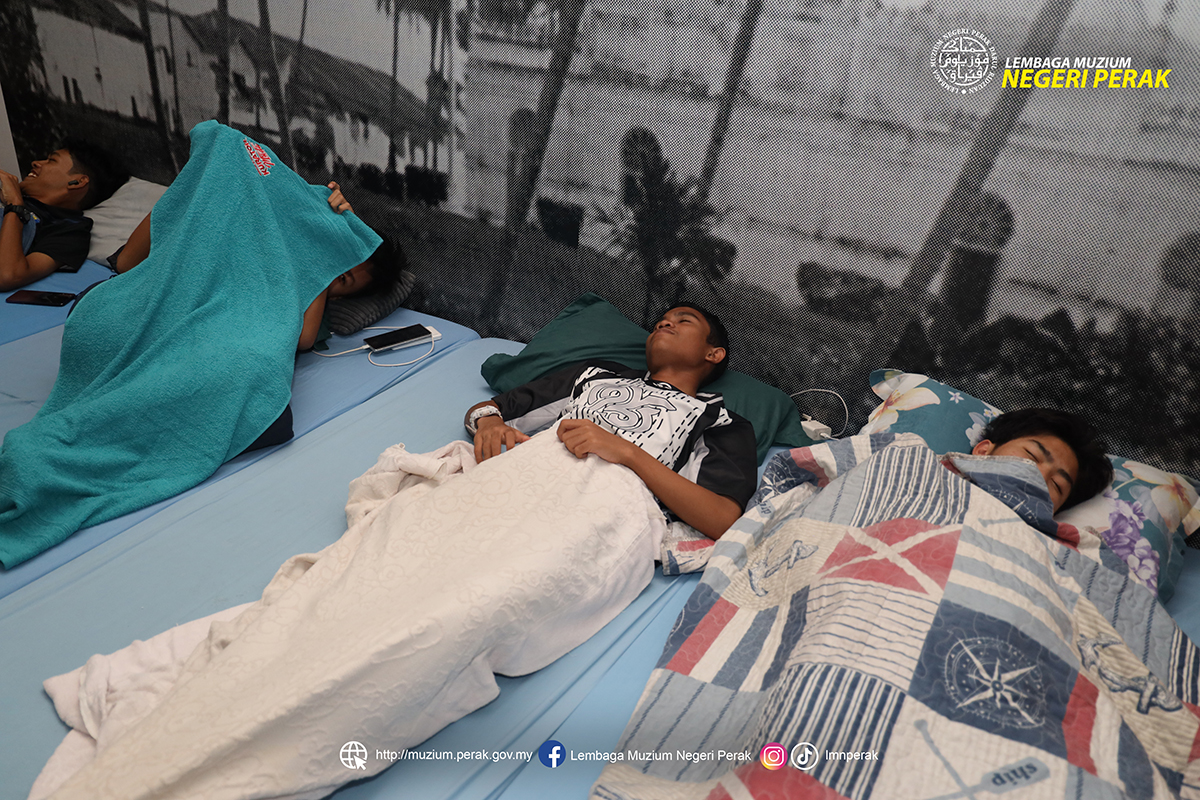 Peserta Program Bermalam di Muzium lena dibuai mimpi dalam suasana unik bermalam di Muzium Darul Ridzuan. Aktiviti ini memberi pengalaman berbeza, membolehkan mereka menyelami sejarah sambil menikmati suasana tenang di tengah artifak bernilai. Tidur beramai-ramai mengeratkan ukhuwah serta meninggalkan kenangan indah yang sukar dilupakan.