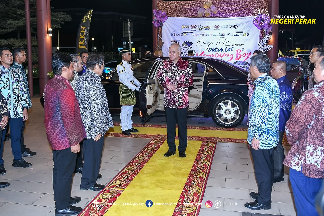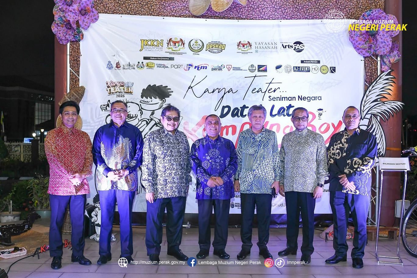 15 November 2025 (Sabtu) : Lembaga Muzium Negeri Perak telah turut serta memeriahkan Pementasan Teater Seniman Negara Dato' Lat – “Kampung Boy” yang dijadualkan berlangsung selama tiga hari bermula 14 hingga 16 November 2025 (Jumaat - Ahad) pada pukul 8.30 malam, bertempat di Auditorium Kompleks Jabatan Kebudayaan dan Kesenian Negara (JKKN) Perak. Penyertaan ini adalah bersempena jemputan sebagai pempamer Mini Galeri Lat, menampilkan paparan bahan koleksi, ilustrasi serta visual berkaitan karya-karya agung Dato' Lat.
