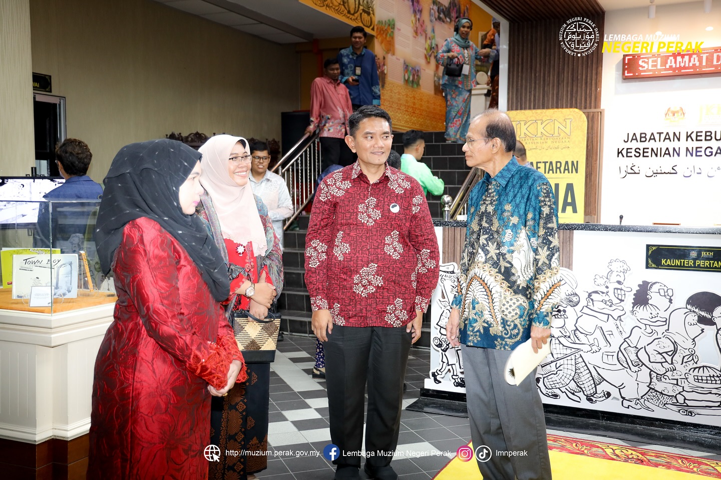 Hadir sama YBhg. Dato' Shaharuddin bin Abu Sohot, Ketua Setiausaha Kementerian Pelancongan, Seni dan Budaya; YBhg. Dato' Mohammad Nor bin Mohd Khalid, Seniman Diraja dan isteri, Datin Faezah Ahmad Zanzali; YBrs. Encik Mohd Amran bin Mohd Aris, Ketua Pengarah JKKN serta ketua-ketua jabatan negeri dan persekutuan.