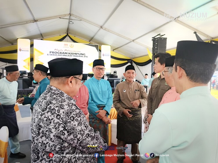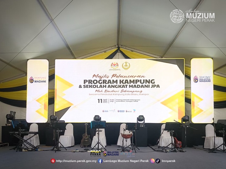 11 April 2026, Sabtu Lembaga Muzium Negeri Perak turut serta memeriahkan Majlis Pelancaran Kampung Angkat & Sekolah Angkat MADANI Jabatan Perkhidmatan Awam (JPA) di SK Kota Bharu, Kampar, Perak. Penyertaan ini adalah bersempena jemputan sebagai pempamer Mini Galeri Rumah Lat, menampilkan paparan bahan koleksi, ilustrasi serta visual berkaitan karya-karya agung Dato' Lat yang turut berasal dari Kampung Kota Bharu, Perak.
